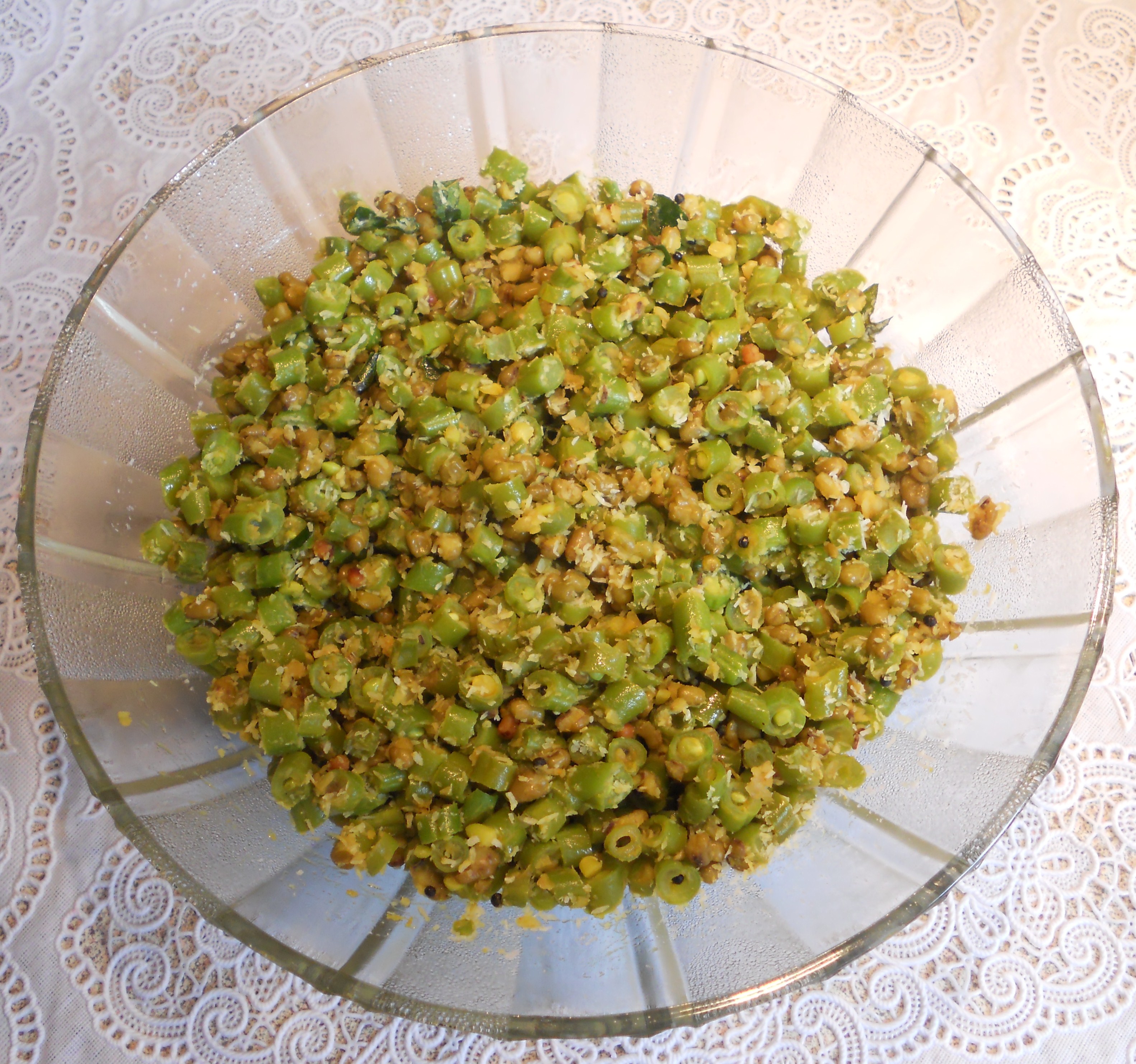 Beans Pachai payaru Thuvaran – Beans and Green gram dry curry