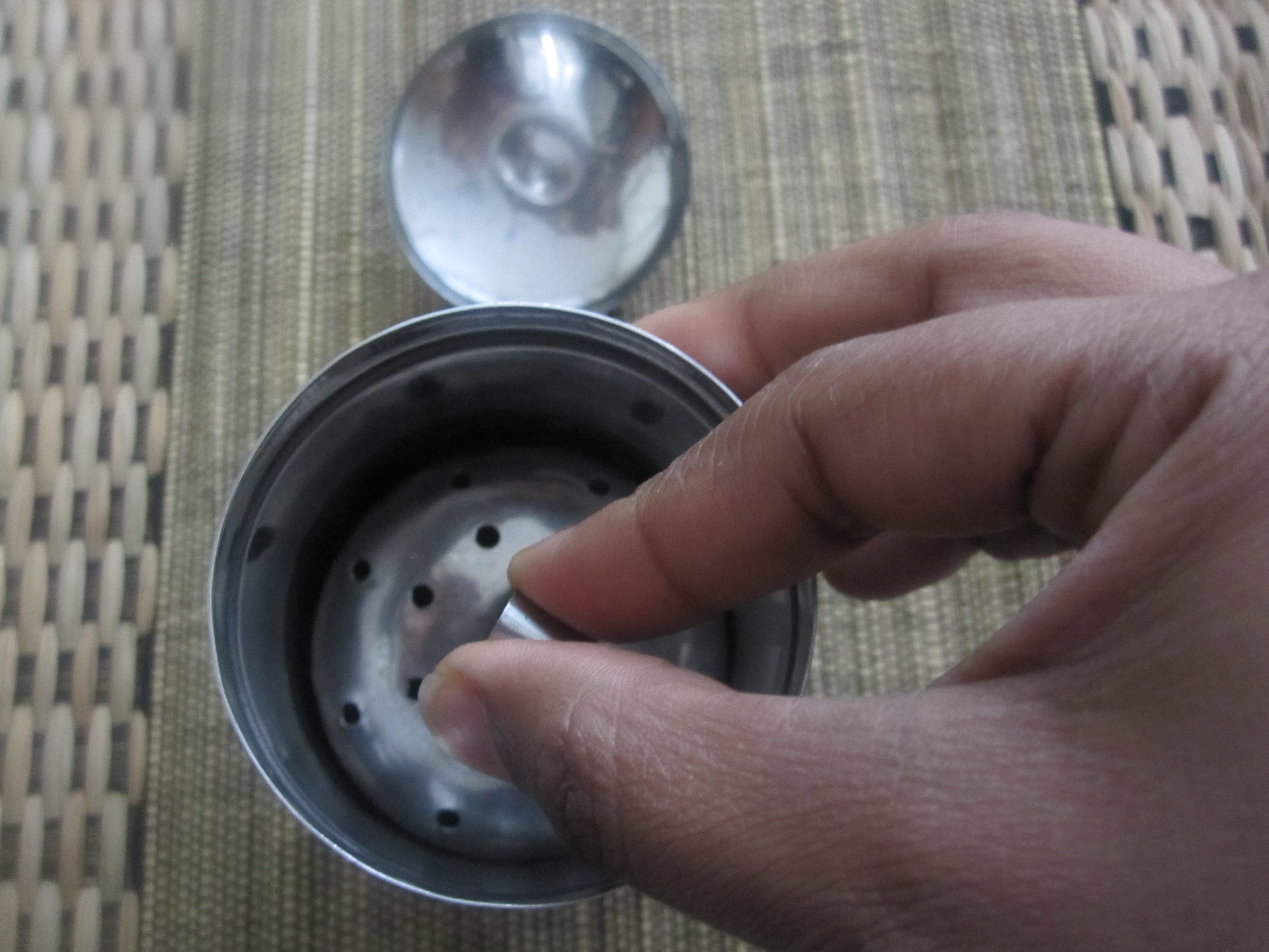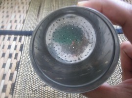 • The upper cup is the filtering portion and has very small pores to hold the powder and let out the black coffee