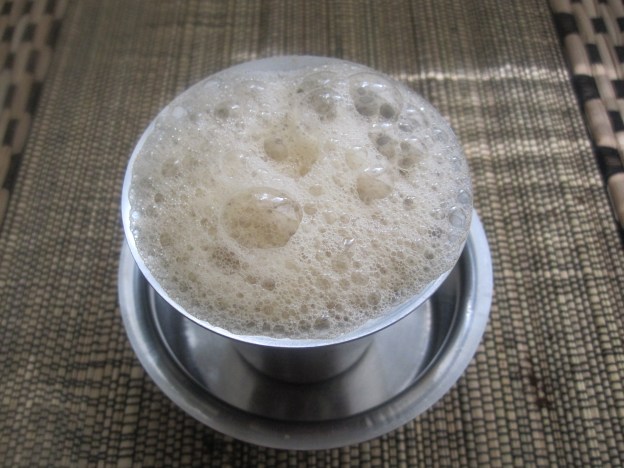 But, children were given coffee to drink only when they enter universities. When we were still in school, only milk and milk based porridges or drinks. Seeing thaatha, aachi, appa and amma drink foamy frothy coffee, we would also demand foamy frothy milk and fight for the best foam between siblings. After the milk is done, amma is always there to wipe our milky cat moustaches with her mundhanai – or saree pallu.