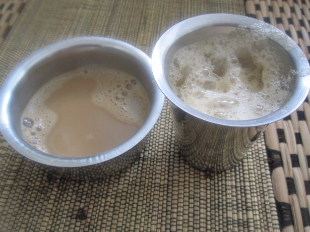 No left over decoction and no old milk for filter kaapi.  When the new milk packet comes home every morning, it is opened and boiled.. ready for immediate consumption of kaapi. Kaapi is served in dabara set – small bowl and tumbler/glass. The bowl is either to mix sugar separately or make the kaapi right and medium hot to drink.