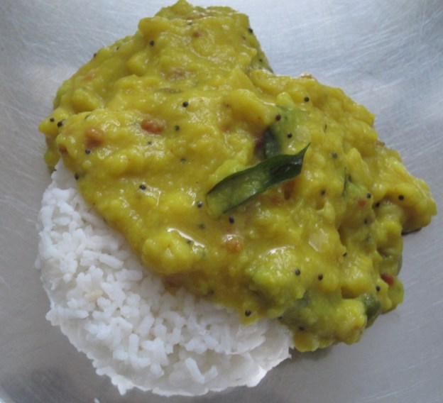 It doesn’t mean we start having our meal after Paanakam. It is only Paanakam and fruits for the night. After defeating the demon, Lord Murugan marries Devayanai the next day – it is called the Thirukkalyanam – or the sacred marriage. After six days of fasting, every family has a feast on Lord Murugan’s marriage – with six kinds of mixed rice delicacies – Kalavai Saadham or Viragina Saatham which literally means mixed rice. Some also call it Chitrannam. Lemon Rice, Tamarind Rice, Coconut Rice, Ven Pongal (salted rice and lentil), Sarkkarai Pongal (sweetened jaggery rice) and seasoned yoghurt rice are the six varieties – some might also substitute with other mixed rice varieties (would be posted shortly). We wait for the morning to come, have a hair wash – the auspicious day being the wedding day – stand in for the poojai – and just get ready to have the special wedding feast meal on Banana leaf! (For more on Banana Leaf Meal read – https://dosaikal.com/2011/10/14/thamizhar-virundhu-feast-of-the-tamils/)