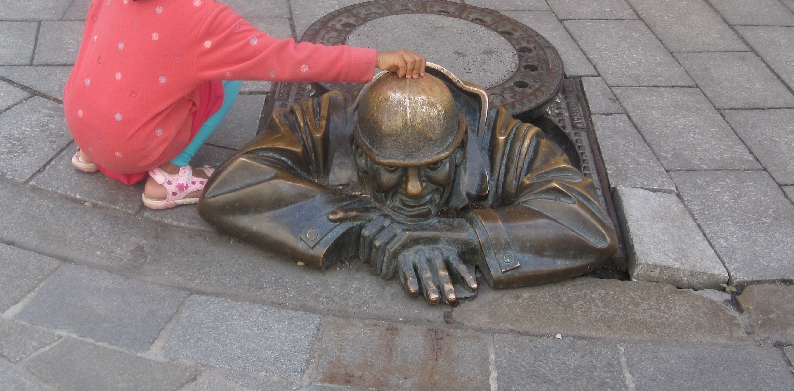 statue sticking out of a hole