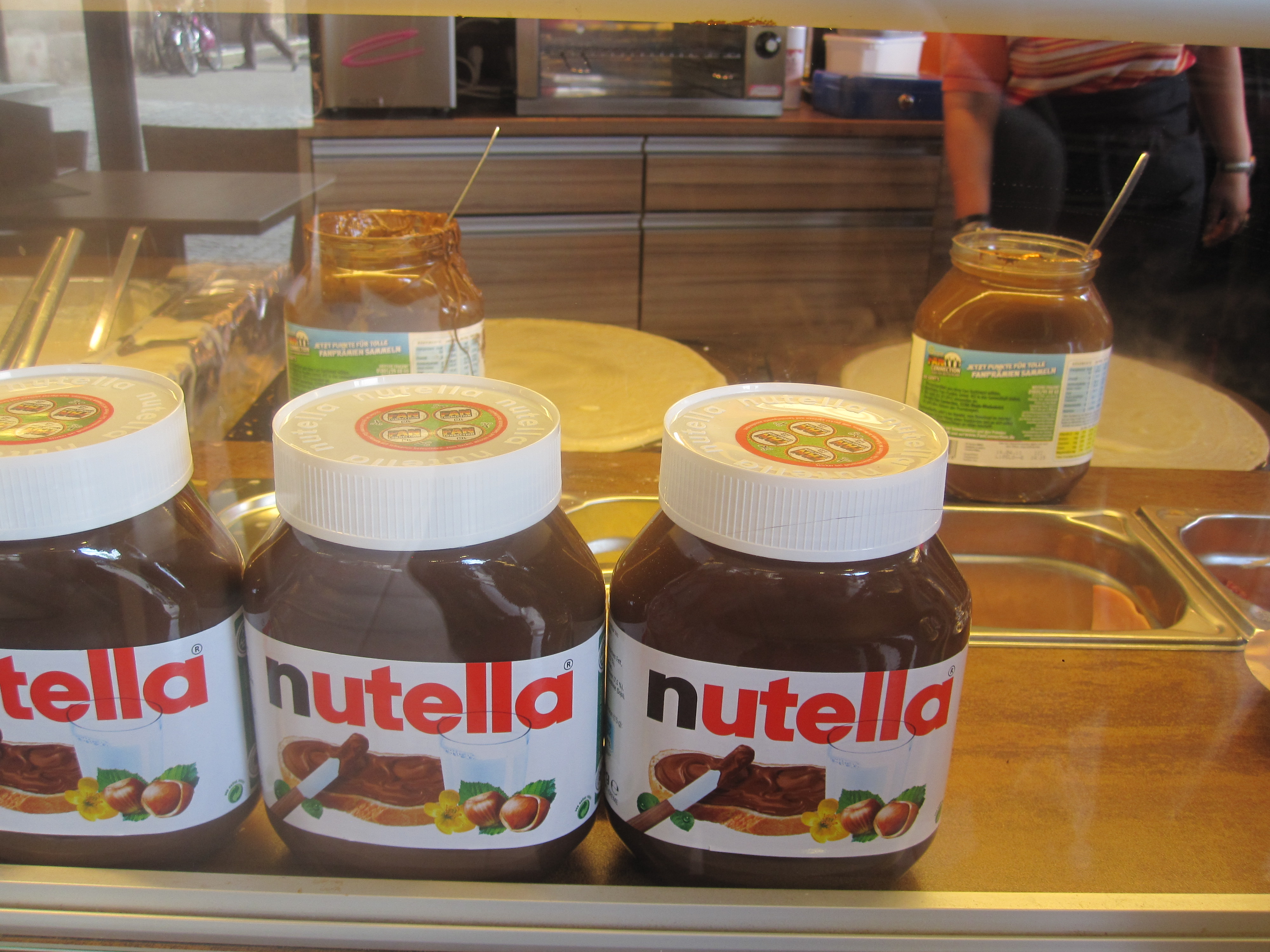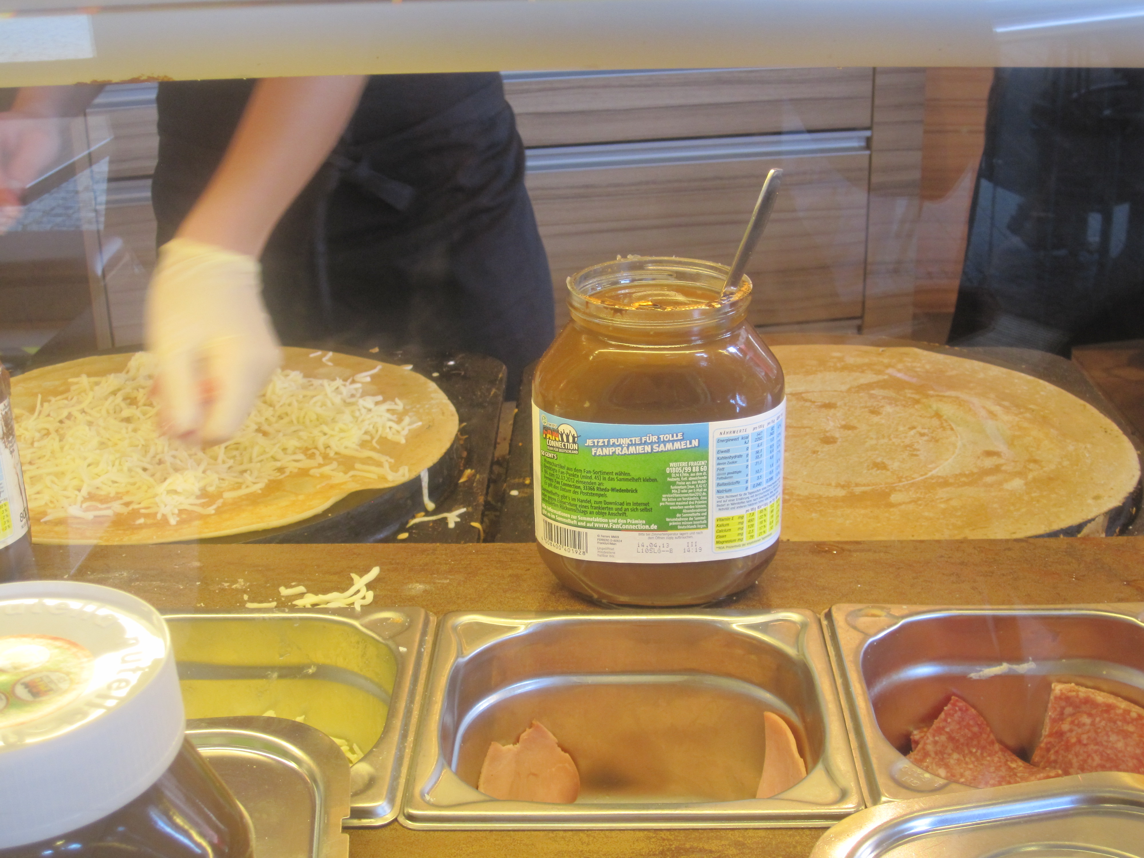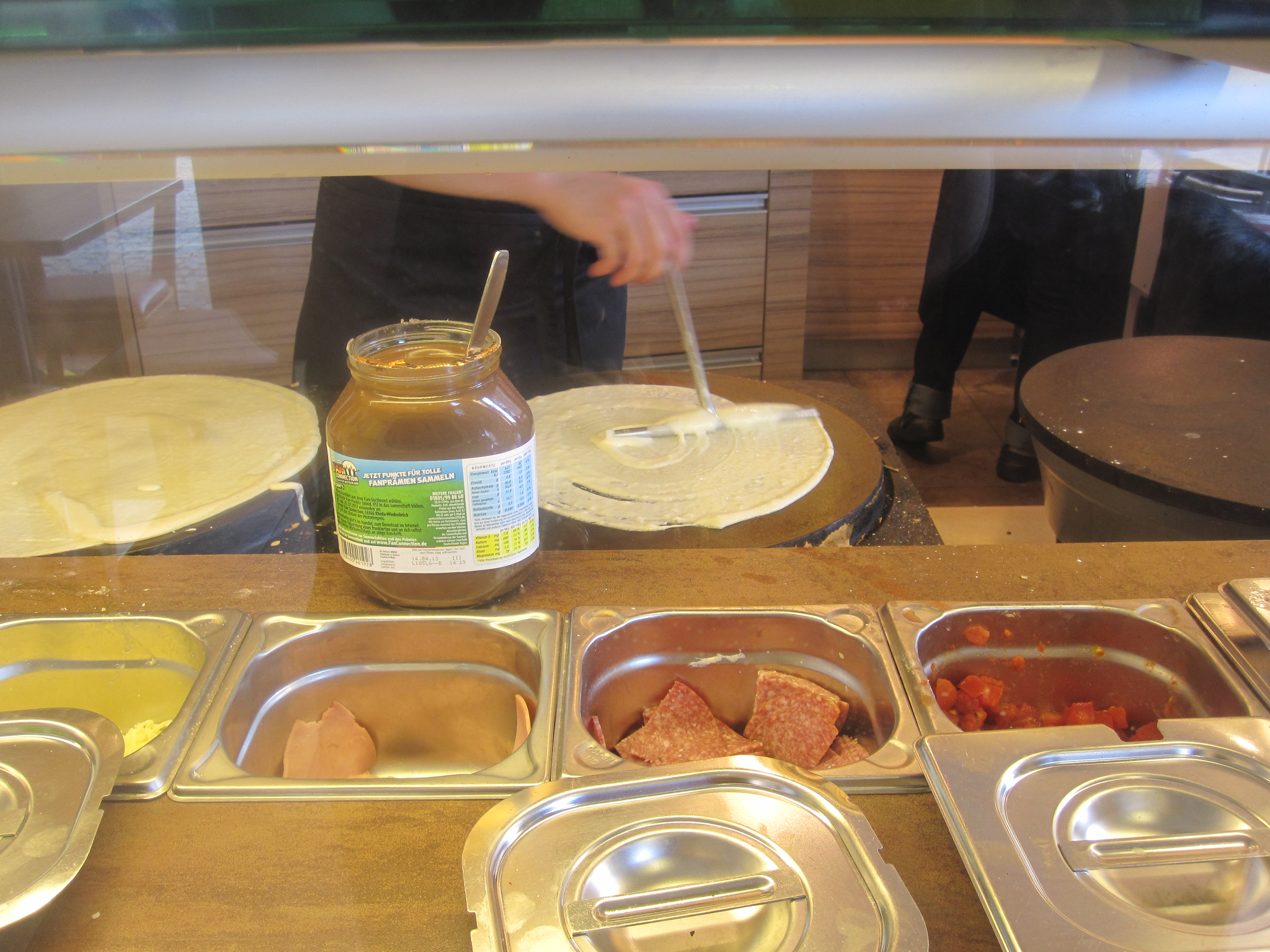 While we wandered for quite a while in the town hall square, there was a fair going on – a sunny summer sunday! Amongst those beer shops and live rock music stuff, we found a crepe shop and clicked a few snaps while the efficient lady of the shop was making them.