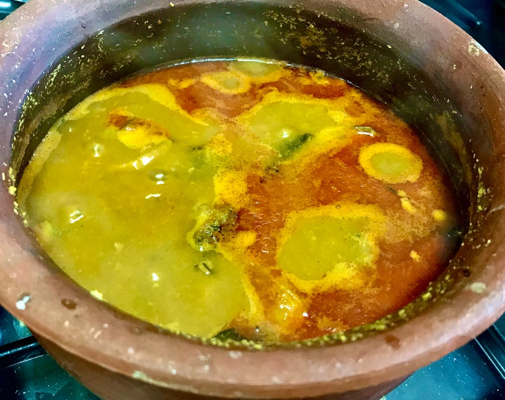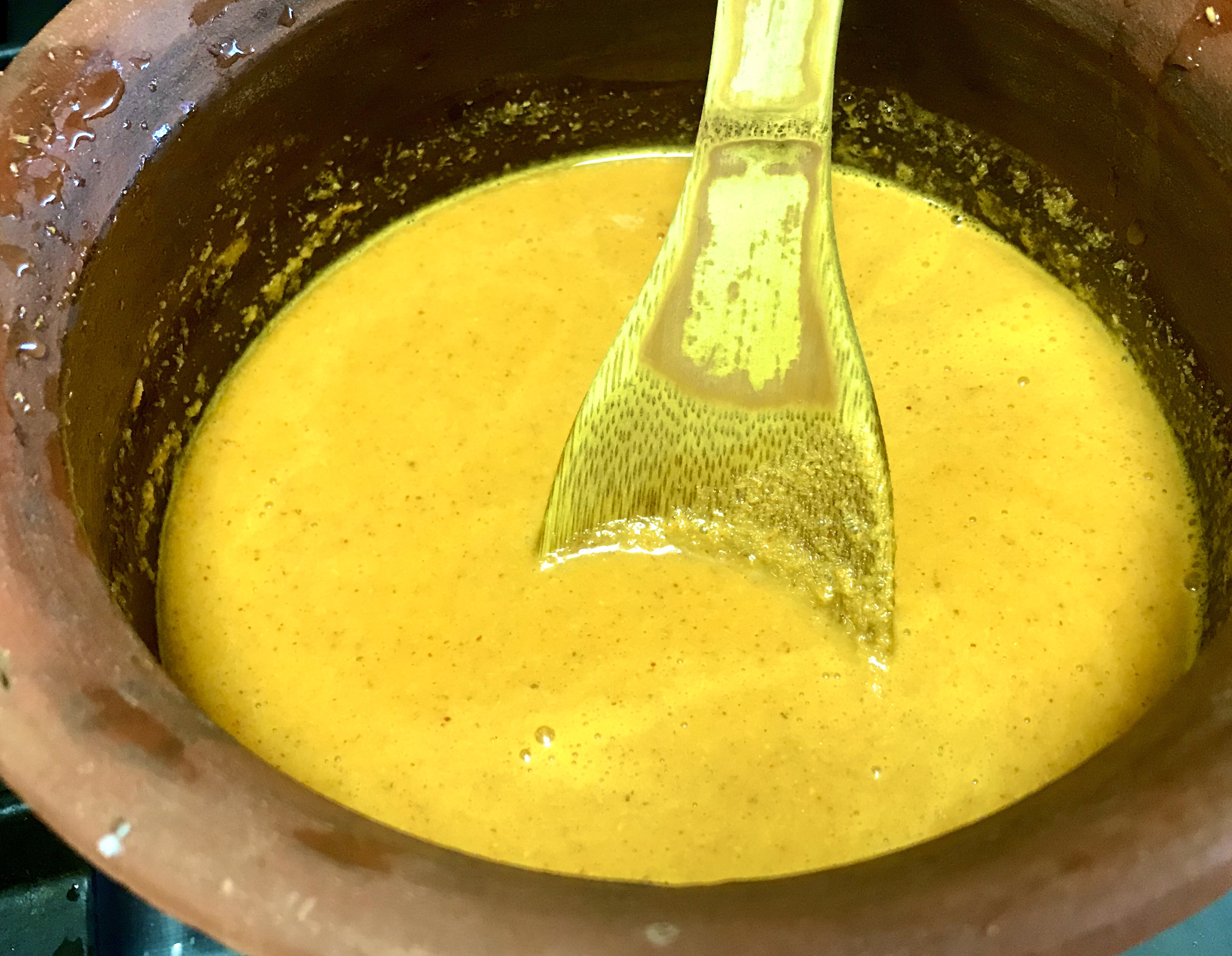 4. In a Clay Curry Pot (Man Chatti in Tamil), add the paste with enough water to make a watery curry