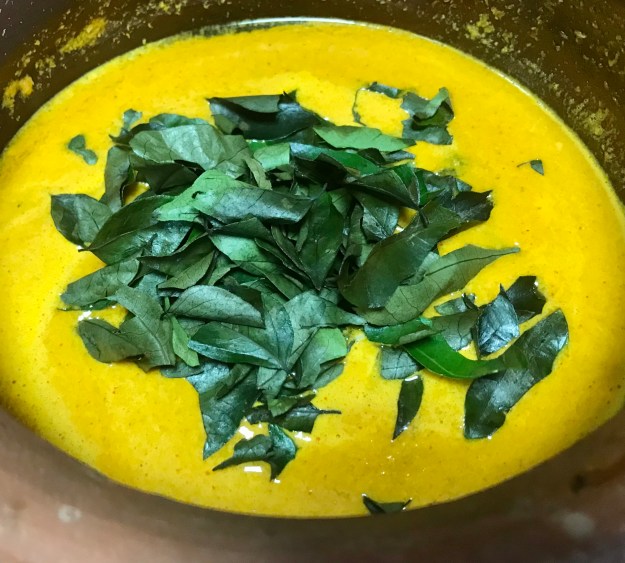 - Season with coconut oil, mustard seeds, green chillies and curry leaves