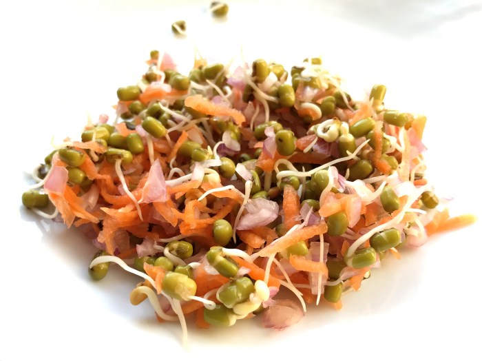 Initially, the inclusion of sprouts started as a salad for breakfast. It was great, light, refreshing and tasty.. They were accompaniments to a light breakfast. Only on a few weekends, we would start the day with sprouts alone to break the fast. After a few years, there was a change in breakfast. I converted to dosais or idlis with whole grains, millets or unpolished rice varieties. Hence, sprouts were shifted to be part of the lunch platter. Fresh salad with carrots, cucumber or any salad veggies with liberal juice of lemon, went with lunch.