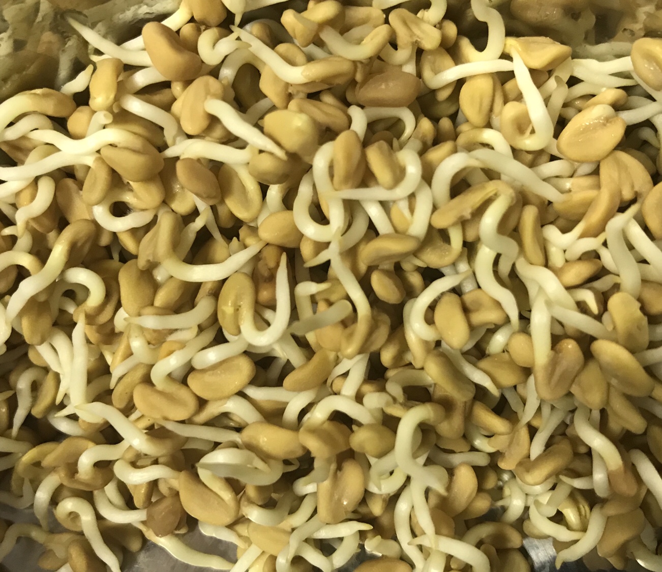 Soak seeds overnight. Drain water. Pat dry with a clean kitchen towel. Place in a clean dry box and close with a damp cheese cloth. Shake every now and then. Be careful, if there is too much water in the seeds, they would attract fungal growth. If they are too dry, they wouldn’t sprout. It might take a few times to understand the process and succeed.