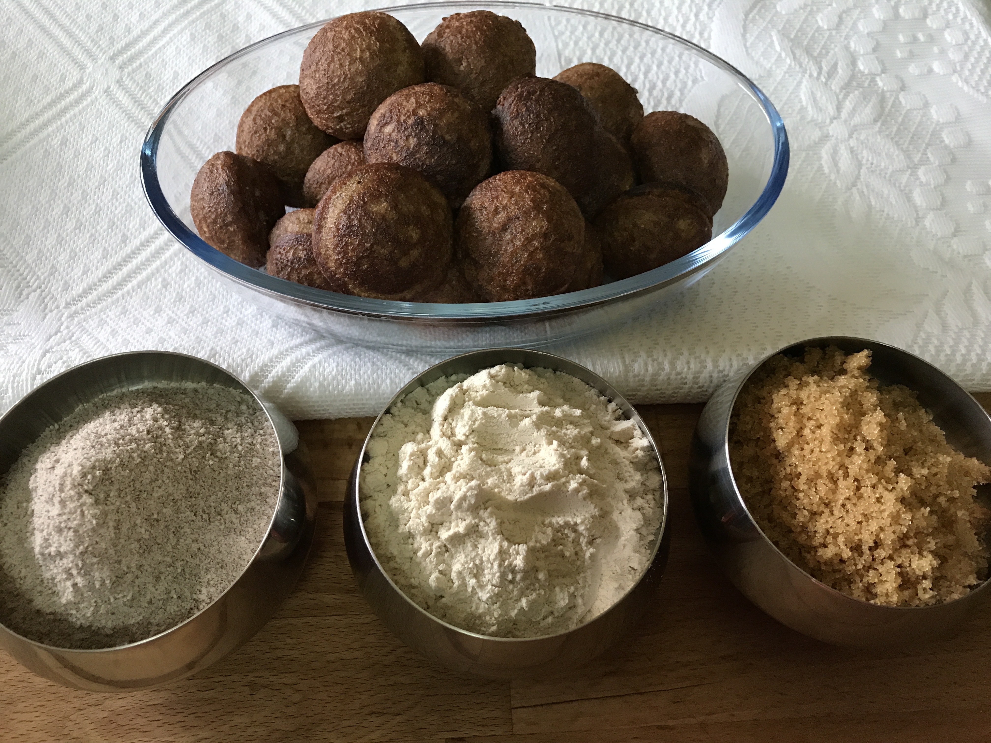 I tried the appam as its healthier variant ‘paniyaram’ with the combination of red rice flour, wheat flour, ripe banana and palm sugar. This powdered Cambodian palm sugar was the last of the batch and I have no more of it, which I realized only after the batter was done and no photos clicked. Hence, the picture shows unrefined cane sugar instead of palm sugar.