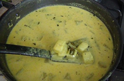 - Let this cook till the vegetables are cooked well and absorbed in the coconut and yoghurt gravy
