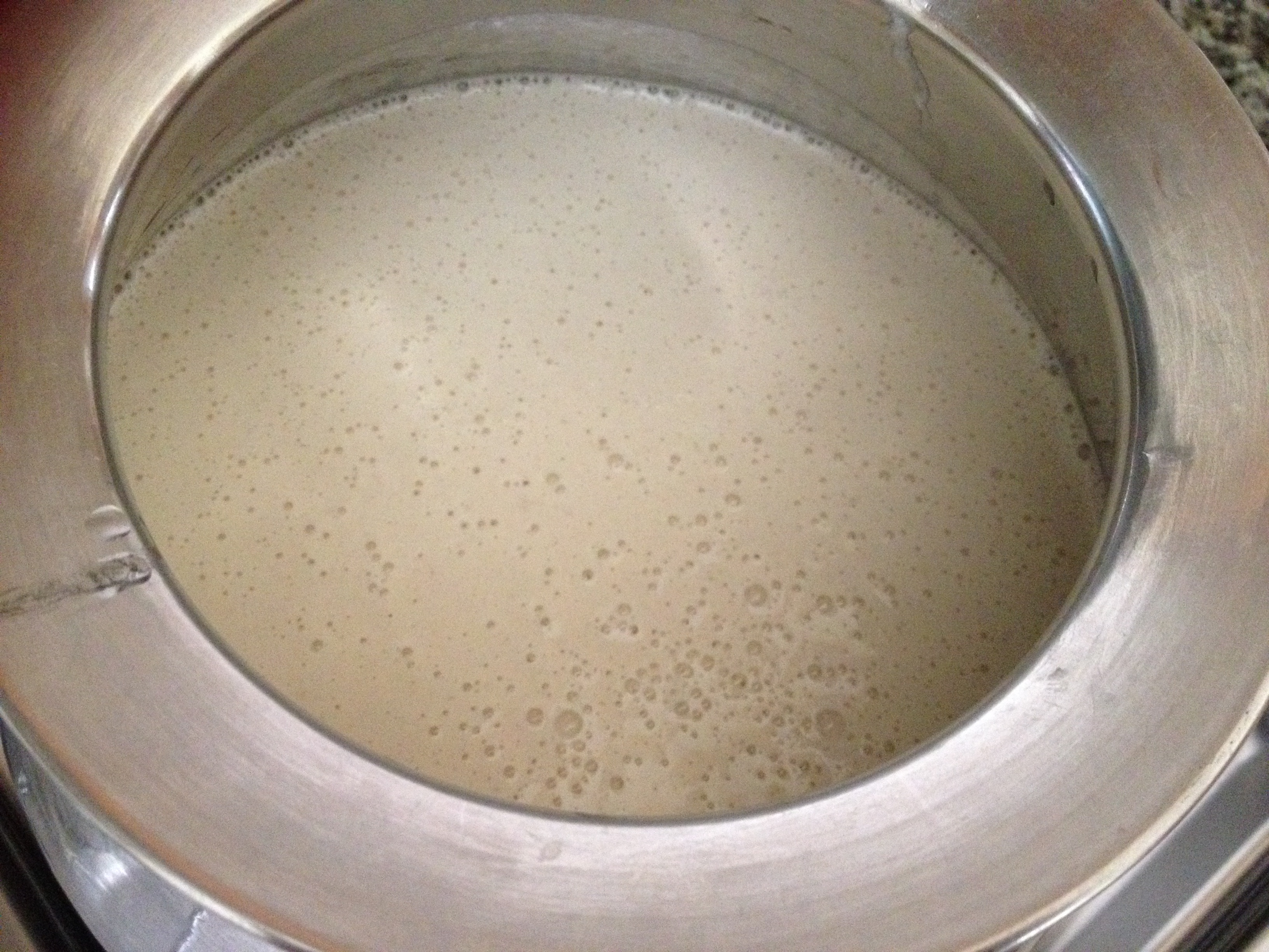 2. Boil jaggery with water to dissolve and remove impurities. Strain and keep aside