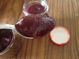 - At this stage, check with the plate in the freezer- swipe a spoon of jam on the plate and cut into two halves. If it sets well and isn’t flowing on the plate when tilted, jam is done. Else, cook for some more time.
