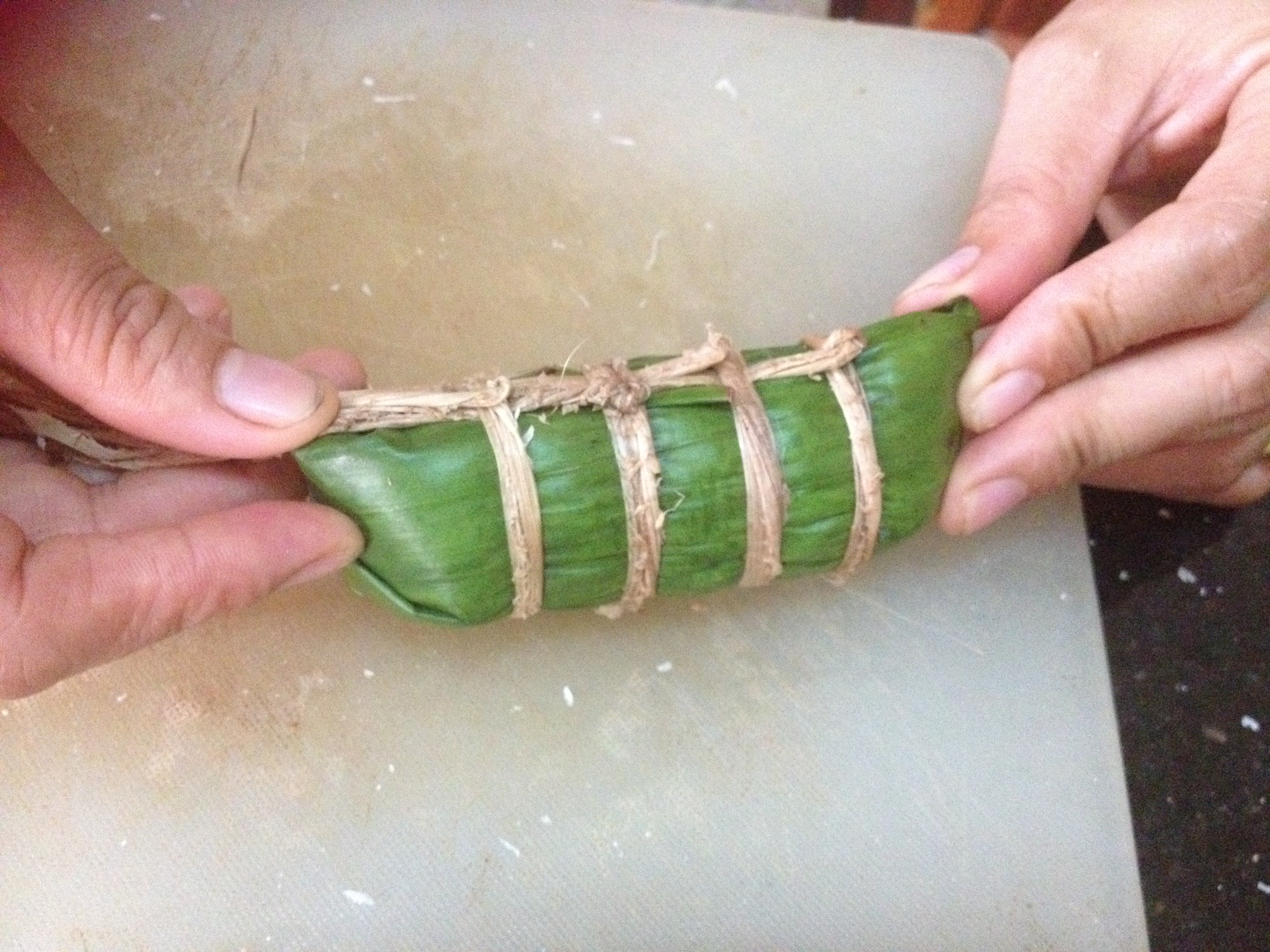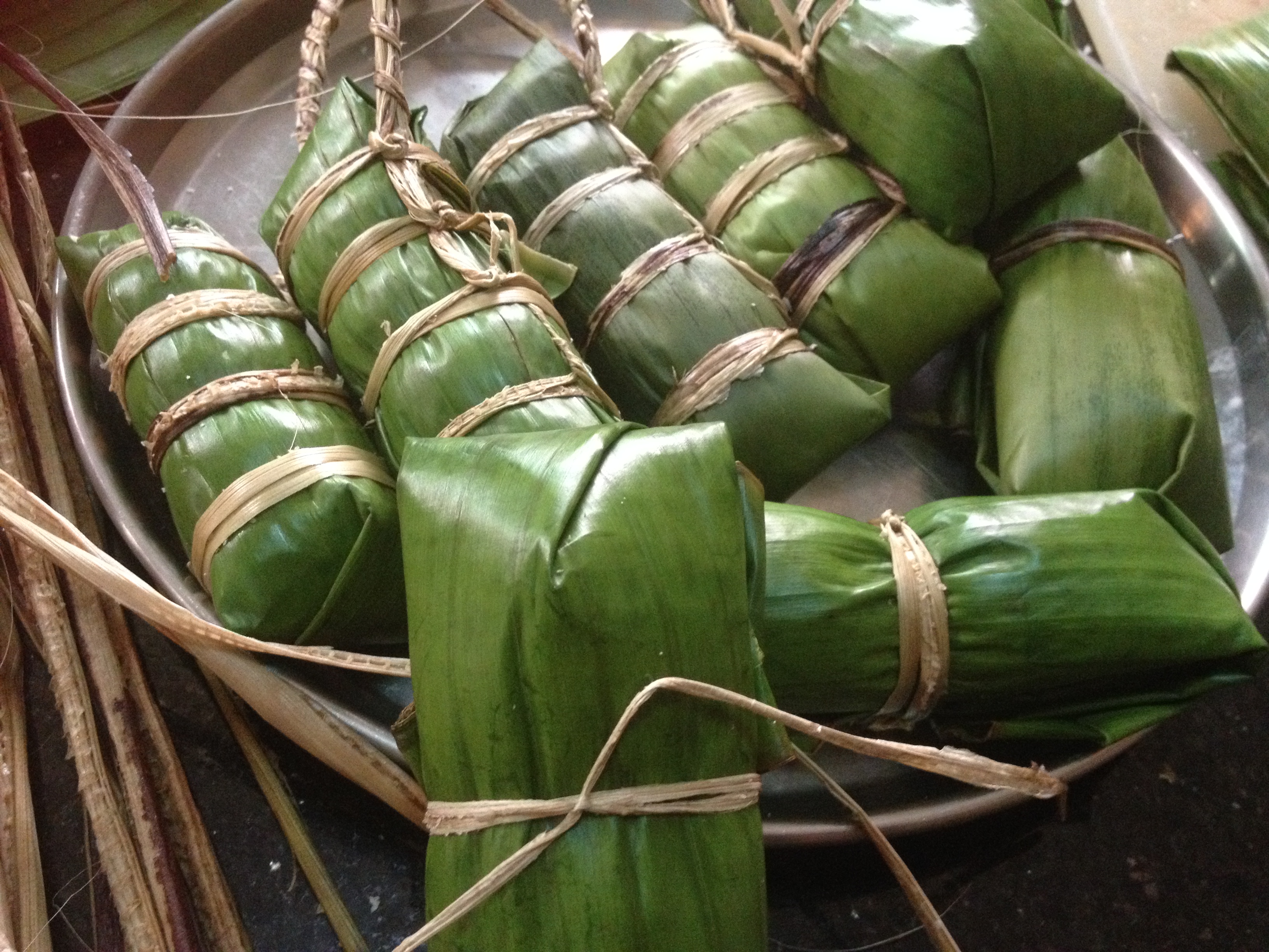This is generally served in a banana leaf cone with a tooth pick in the markets in Phnom Penh.