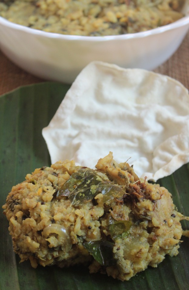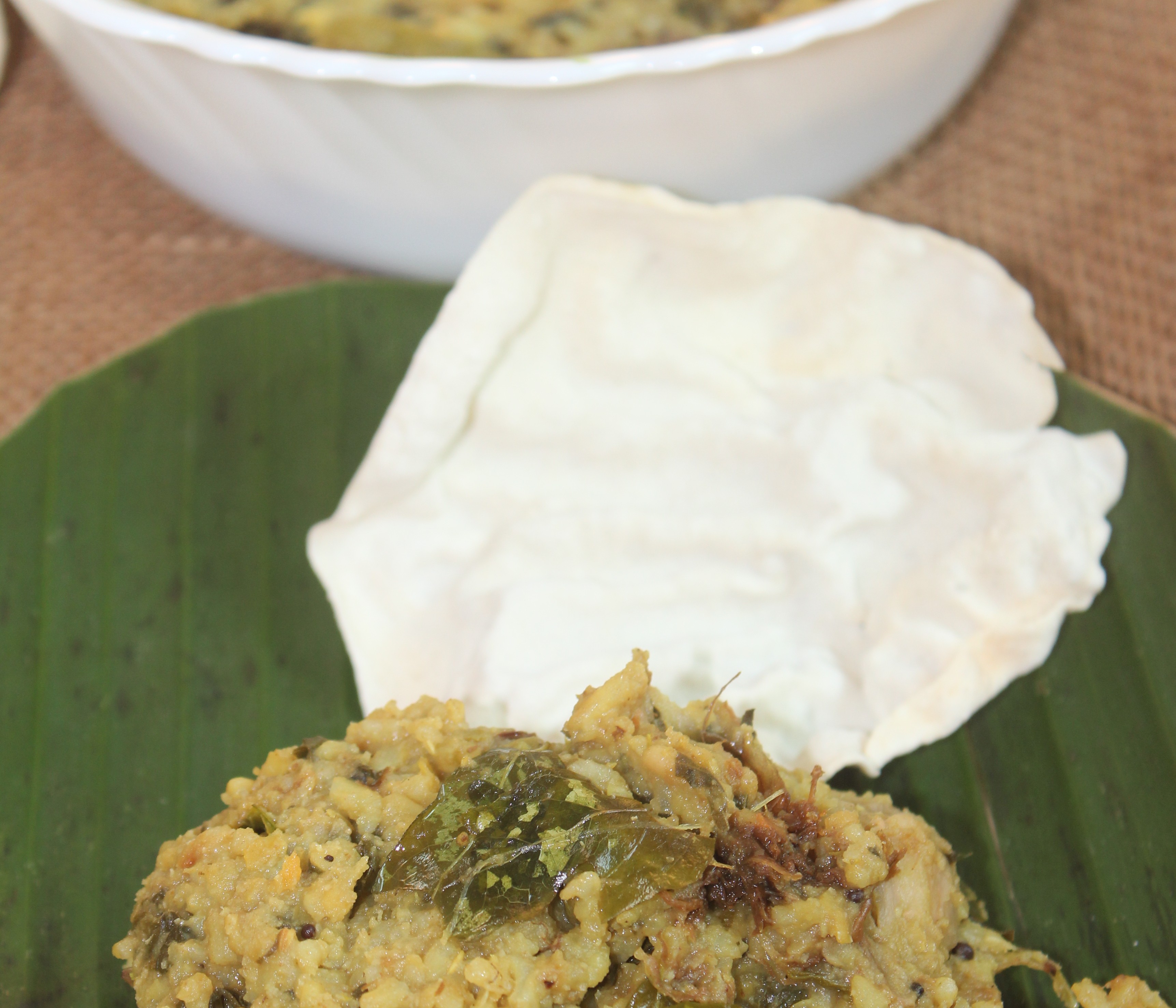 The leaf bowls are called ‘Dhonnai’ – a typical temple meal server. The prasadhams or the food provided to the worshippers in the temples are served in dhonnais – made of different kinds of leaves stitched to form cups (palm leaf, banana leaf, lotus leaf are a few leaves used to make dhonnais). I’d like to highlight here that these are eco-friendly, bio-degradable bowls.